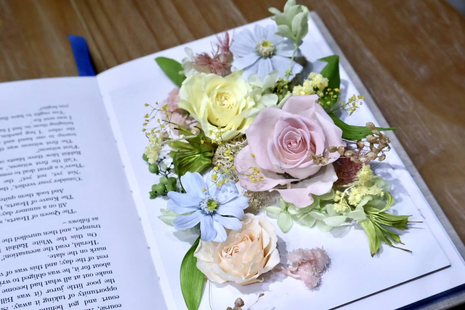 好的花材是作品的靈魂。我們堅持使用日本進口花材(如大地農園 Earth Matters),品質穩定、花型完整。相比之下,廉價的花材可能會有花瓣破損或染色不均的風險。
