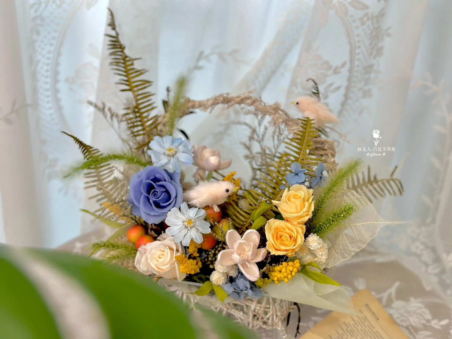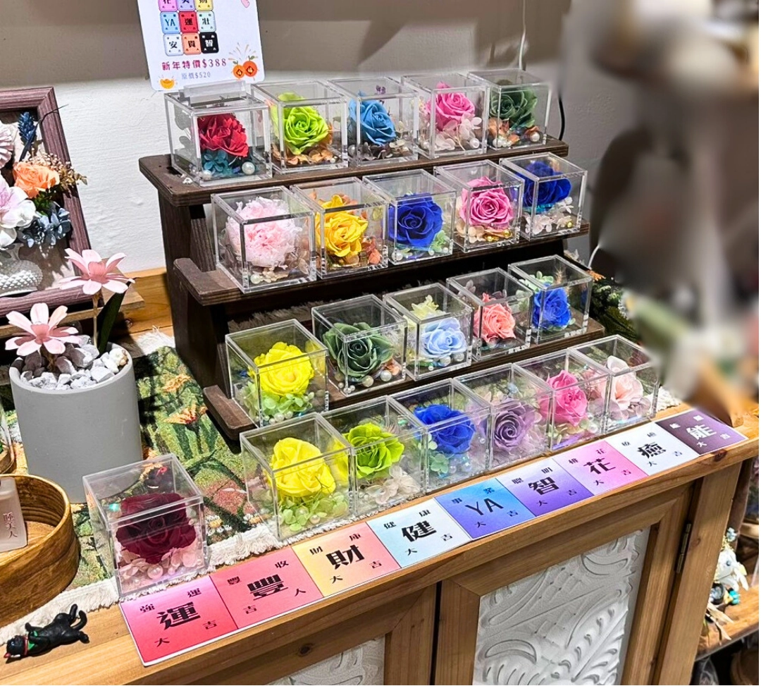 門市位於熱門的藍晒圖文創園區,結合文藝氛圍與創意花藝,每一款不凋花作品都是獨一無二的藝術品,非常適合作為禮物送給親友,或為自己的生活增添一抹優雅!